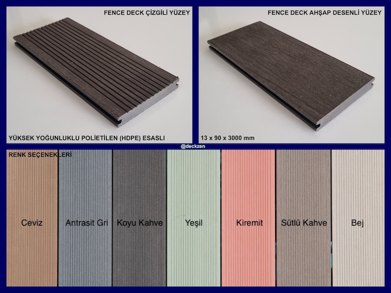 Ahşap Görünümlü Kompozit Deck Kaplamalar iki yüzeyi farklı desene sahip, kaymaz ve antibakteriyel özelliğe sahiptirler.